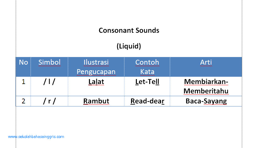 Materi Pronunciation 7: Belajar Consonant Sounds- Liquid